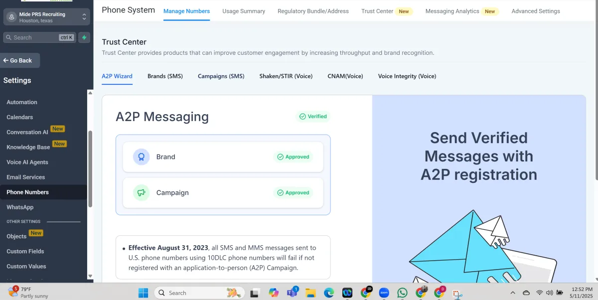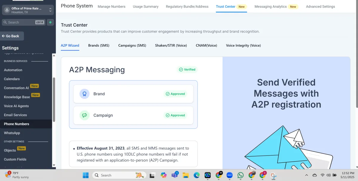 "We've been struggling with this A2P verification for months until we reached out to Danny, and in just couple of days we could start sending SMS to our contact list
